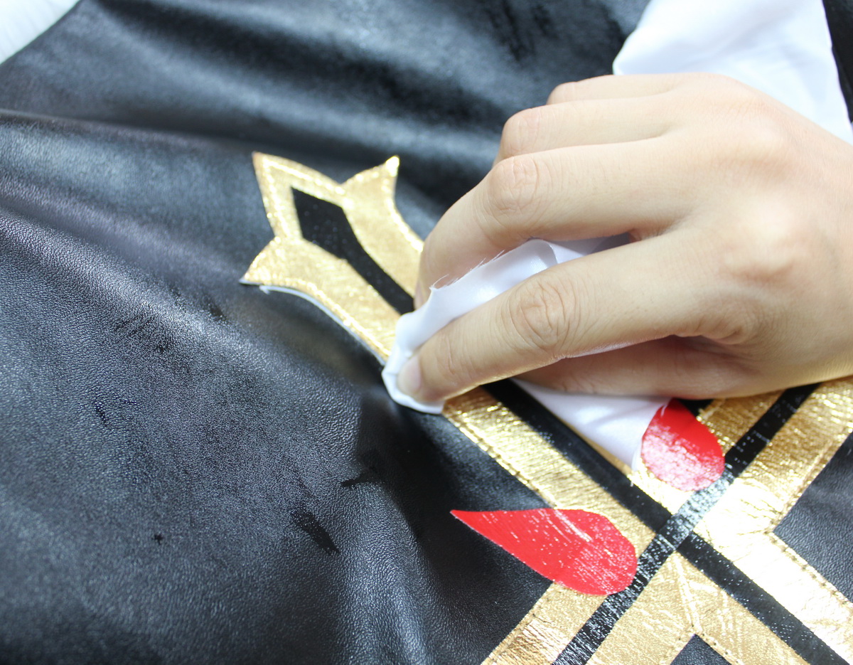 - 合皮製衣装の洗濯はご遠慮ください。色なしの保革剤でやさしく拭ってください。